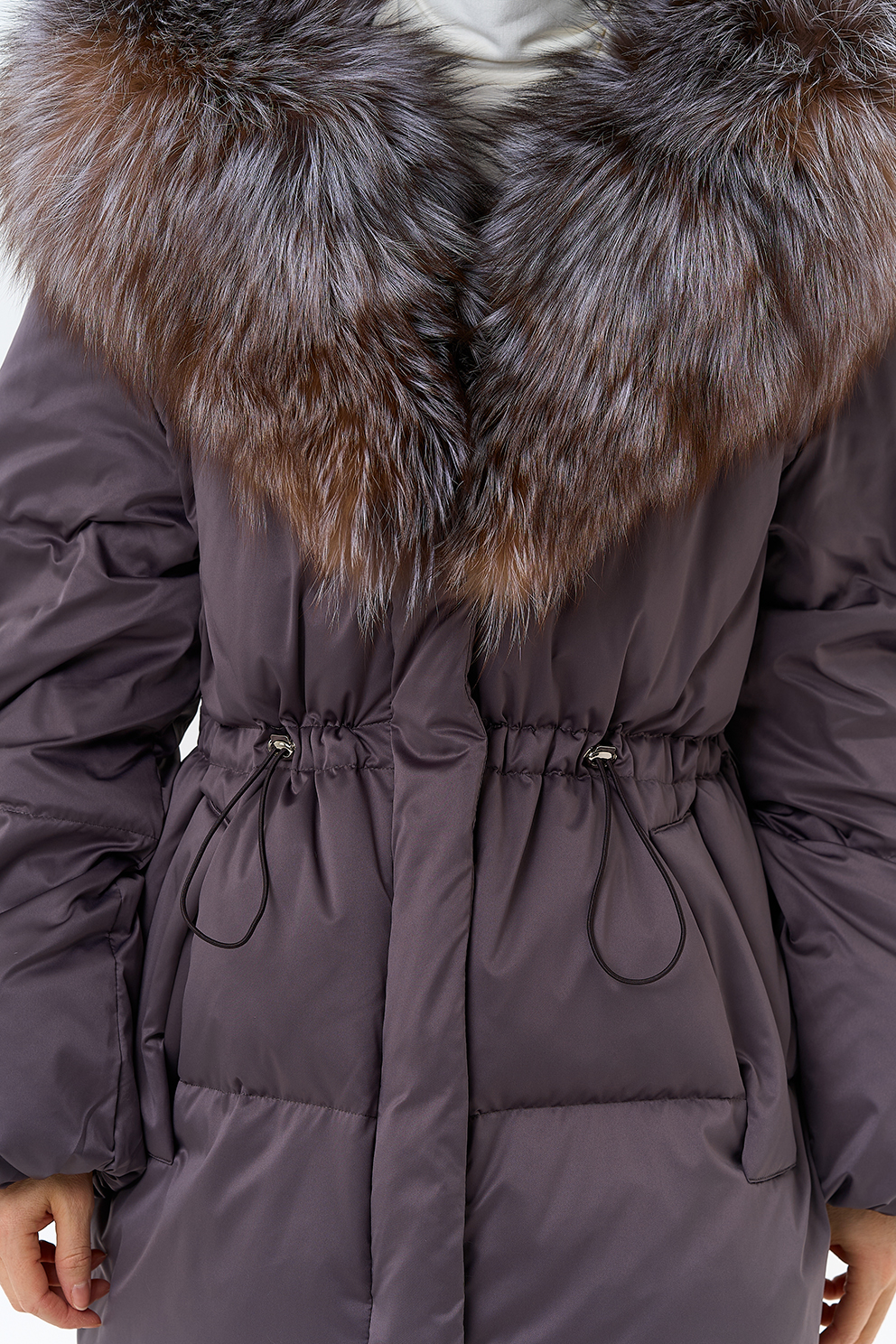Крой воротника - капюшон, отделка блюфрост