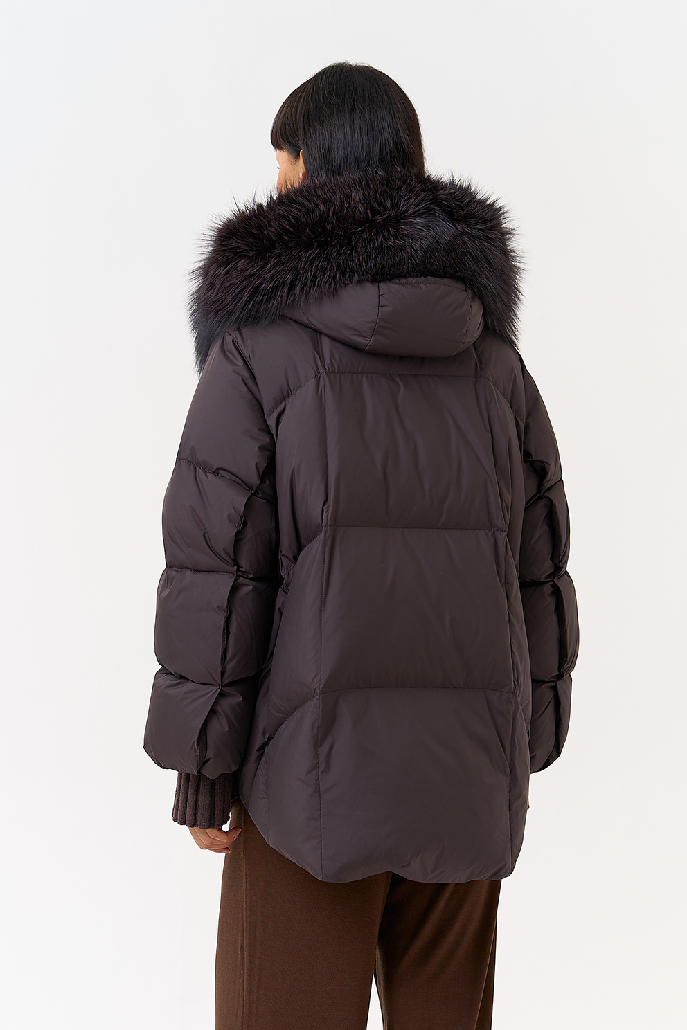 Крой воротника - капюшон, отделка чернобурка