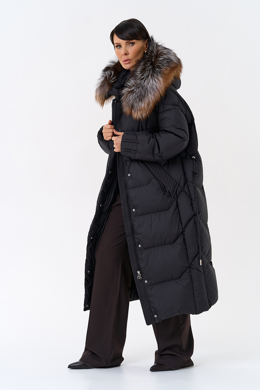 Крой воротника - капюшон, отделка блюфрост