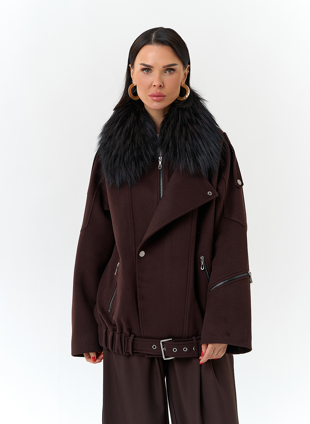 Отделка воротника - съемный мех лисы, цвет черный