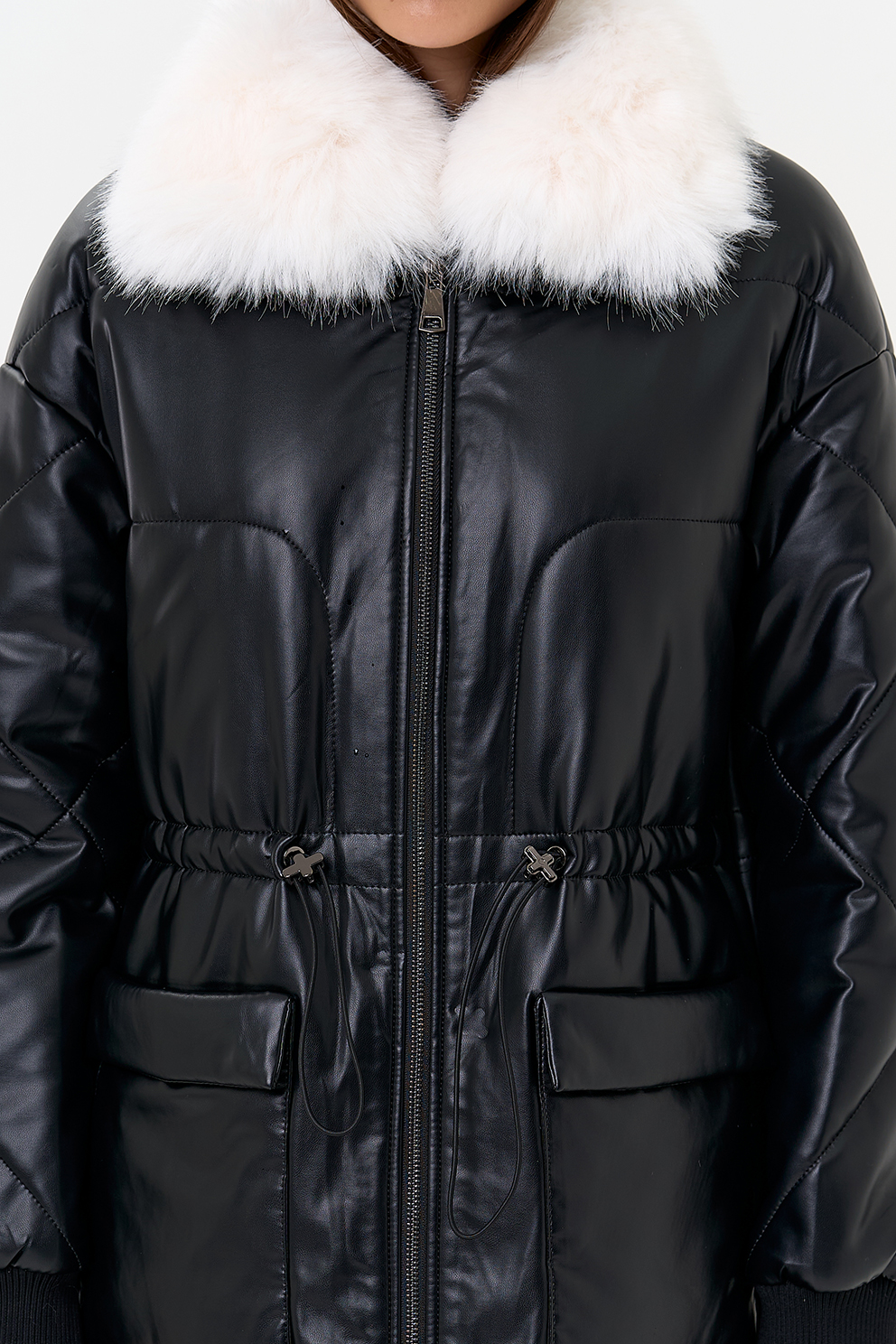 Отделка воротника - съемный эко мех, цвет белый